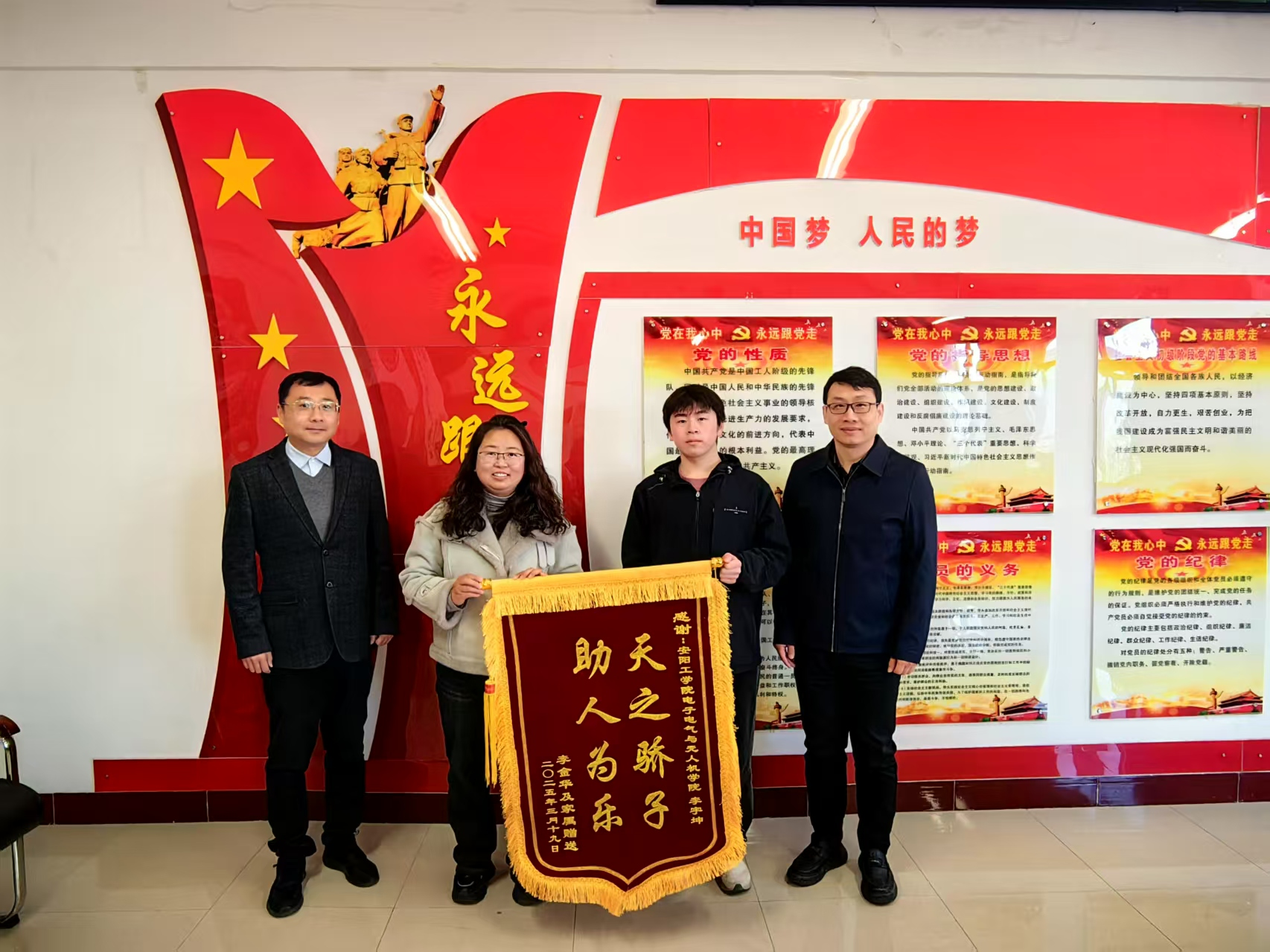 2025年3月19日上午,william希尔电子电气与无人机学院洋溢着温暖与感动:一位安阳市民专程来到学院,向2024级电气工程及其自动化专业的学生李宇坤赠送锦旗,以此表达对李宇坤善举的诚挚谢意。