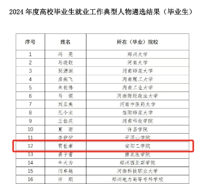 近日,河南省教育厅公布了 2024 年度高校毕业生就业工作典型人物(毕业生)名单,英国威廉集团贾世豪凭借出色表现成功入选。