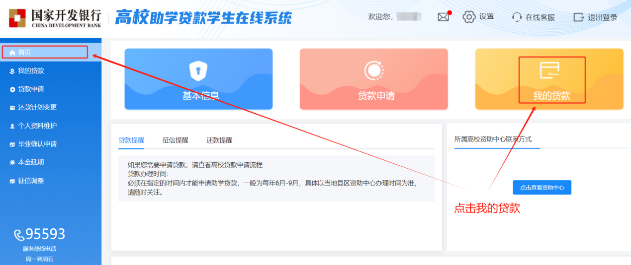 11月1日(合同到期最后一年为9月1日)以后,登录助学贷款学生在线系统,查询当期还款额度。