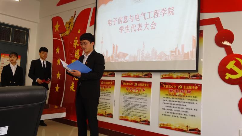 本次大会首先由尹艺蓓讲话致开场词;之后杨玉锋老师对同学们表达了殷切期望;然后电气学院第十三届学生分会主席陈亚江同学发言,代表上届学生会做出工作总结并对新一届学生会寄予希望;随后,五位新一届学生会主席团候选人进行竞选演讲,并采取无记名投票方式差额选举出艾国乾、李森城、柳开鹏三位同学为电气学院第14届学生分会主席团成员,安硕为团总支学生副书记。申庆超向主席团成员和团总支学生副书记颁发聘书,并由安硕带领全体学生代表进行了宣誓,申庆超做出了会议总结,希望新一届学生干部能够以身作则,全心全意为广大师生服务。