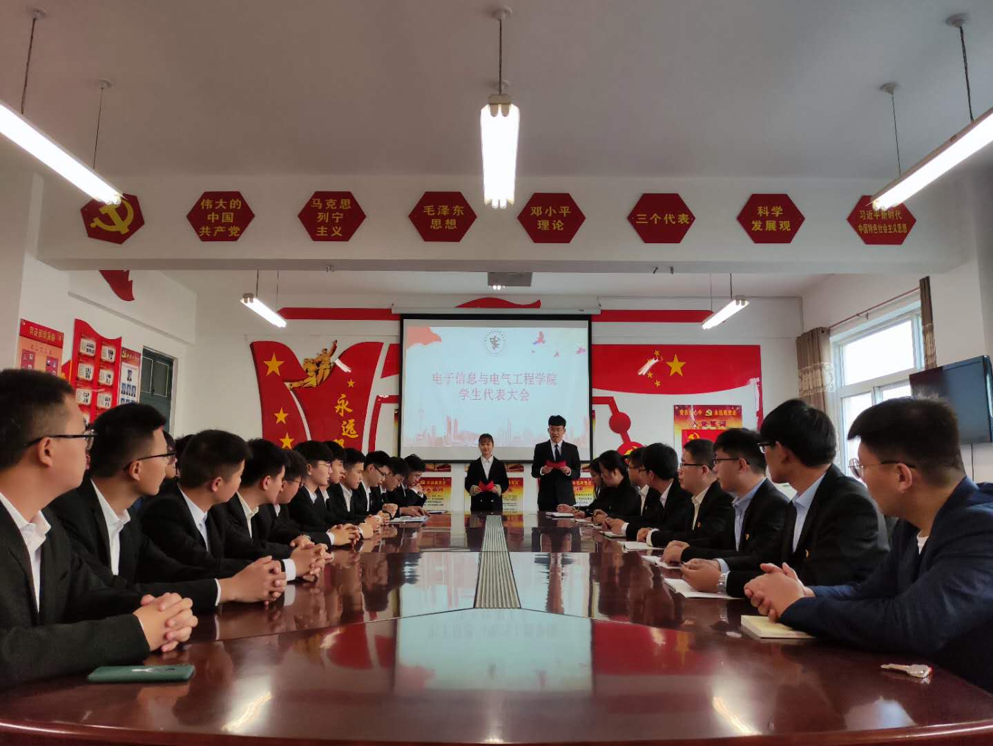 2020年10月24日,我院于A07-308隆重召开学生代表大会暨学生会换届,出席本次大会的有党总支副书记尹艺蓓,团总支副书记申庆超,全体辅导员老师以及各位优秀的学生代表。